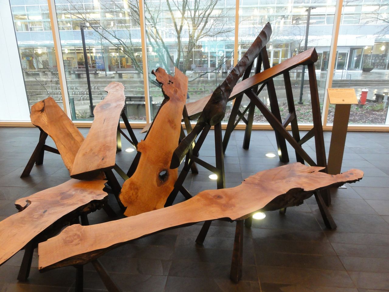 This piece is a reflection on renewal and new beginnings. The sculpture and accompanying benches symbolize a tree giving back to the forest.