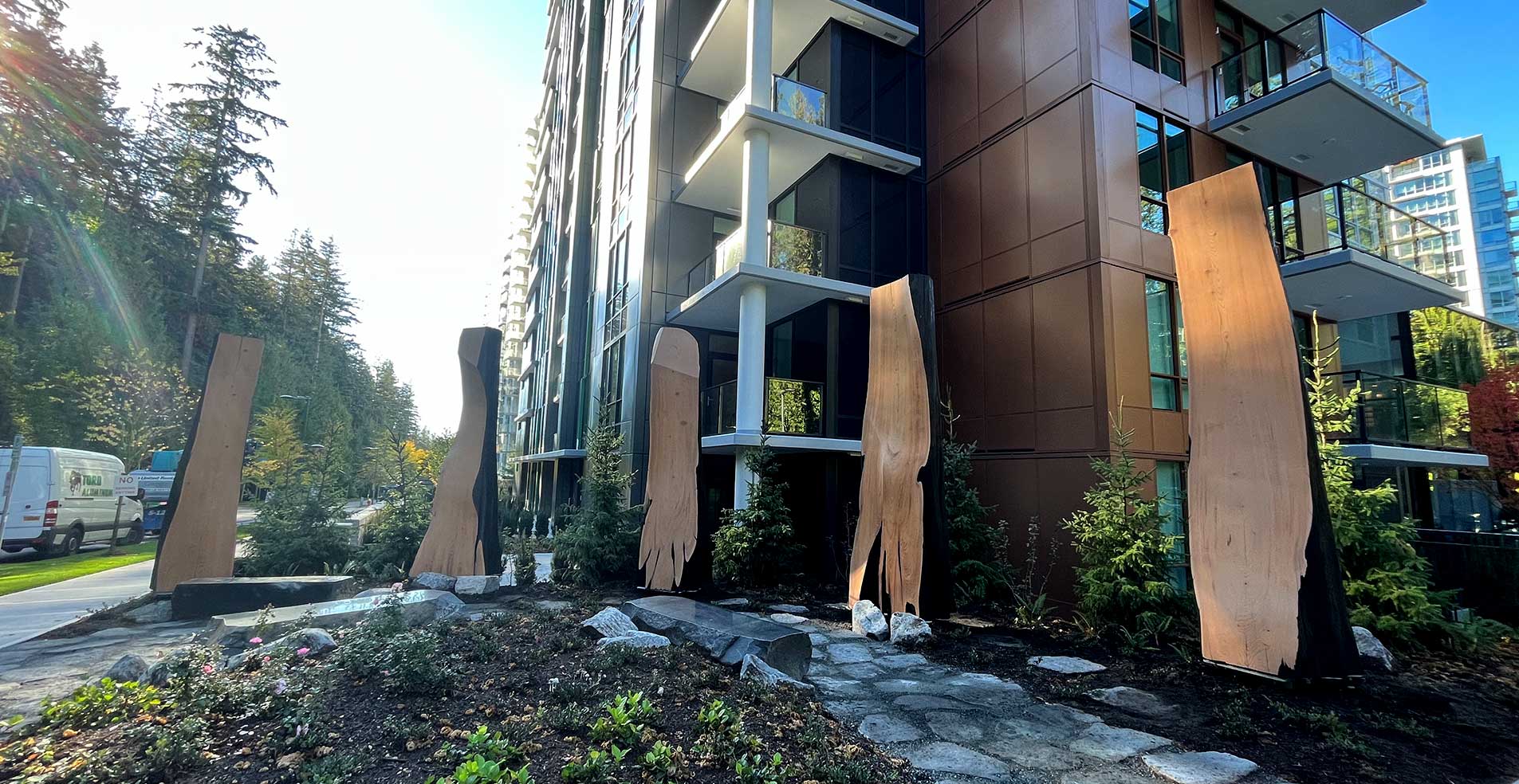 These captivating sculptures strike an elegant balance between the refined and the rugged, the refined craftsmanship juxtaposed against the untamed, primal essence of the wood. Towering watchfully over all who approach, they evoke a sense of timeless guardianship, their stoic presence a testament to the enduring majesty of the natural world. Each detail, from the towering stature to the richly textured surfaces, has been
