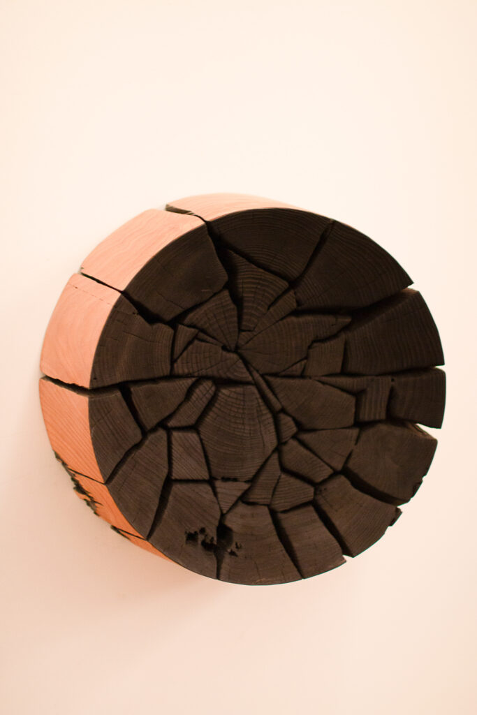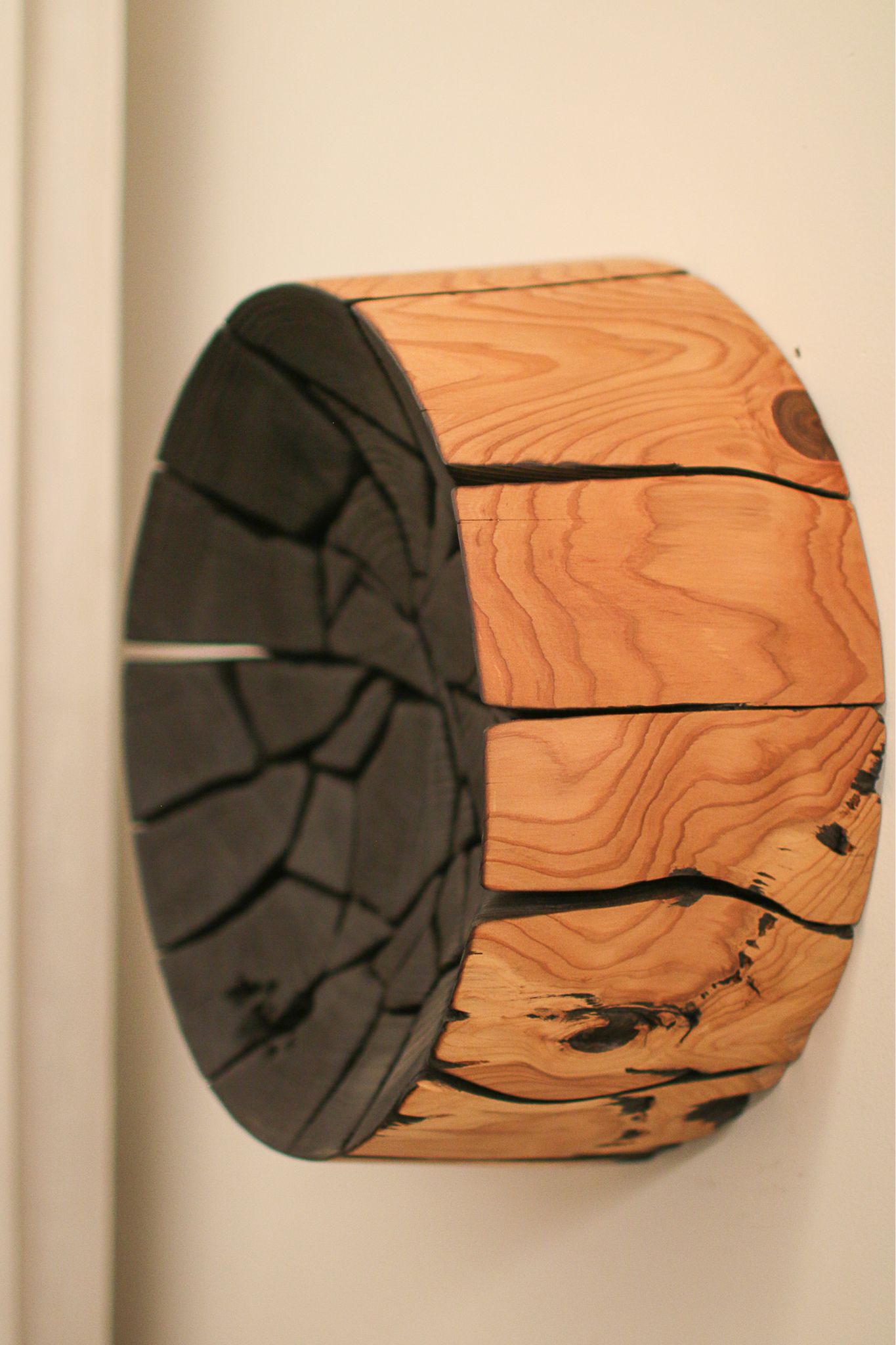Materials: Western red cedar Dimensions: 17″ dia x 8″H Finish: Scorched, black hardwax oil, clear hardwax oil